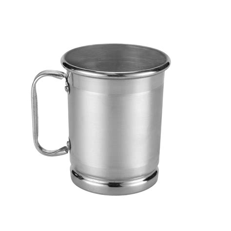 Caneca de chopp em alumínio, capacidade de 450ml, polida (alto brilho) com área de impressão escovado, escovado internamentre, impressão de até 3 cores em alta definição e alça polida (alto brilho). Dimensões: Altura: 10,5 cm. Diâmetro do Fundo: 6,5 cm.